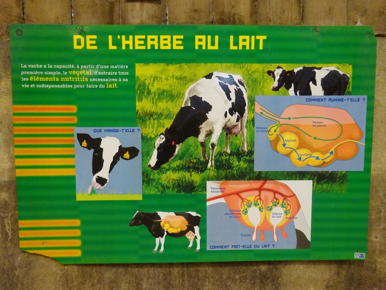 Nous avons parlé des bonnes conditions d’élevage pour les vaches afin qu’elles fabriquent un lait de bonne qualité et en bonne quantité. Nous avons évoqué la stabulation et des différentes aires de sa maison, sa nourriture et ses conditions de bien-être. Nous avons visité la salle de traite et on nous a expliqué les différentes étapes de la traite qui a lieu deux fois par jour.